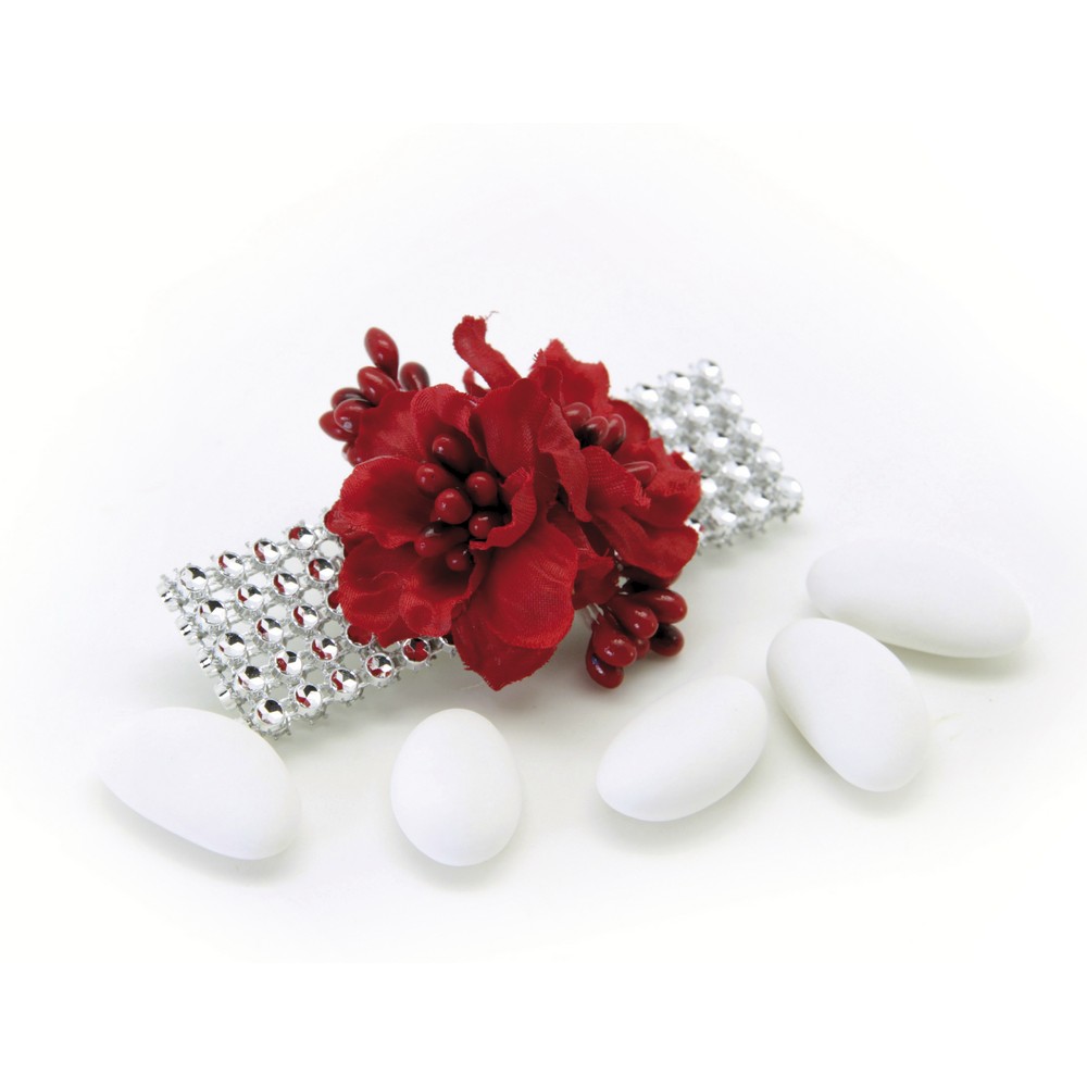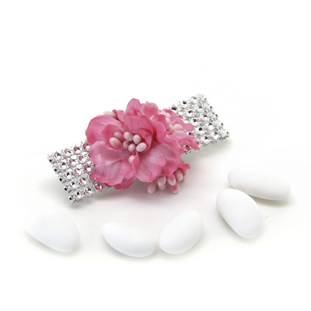 PICK CON GARDENIA IN TESSUTO CON NASTRO STRASS LUNGHEZZA 9 CM 5 PEZZI